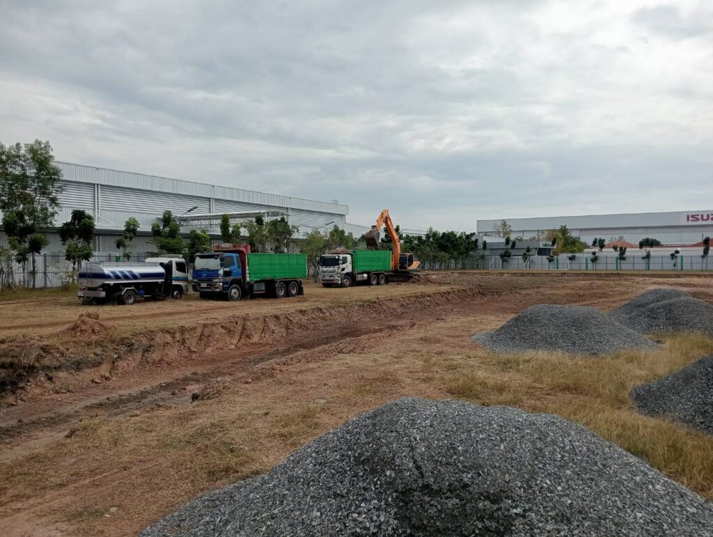 งานก่อสร้างทางเดินและลานจอดรถ บริษัท อีซูซุ มอเตอร์ (โรงงานนิคม เกตเวย์)